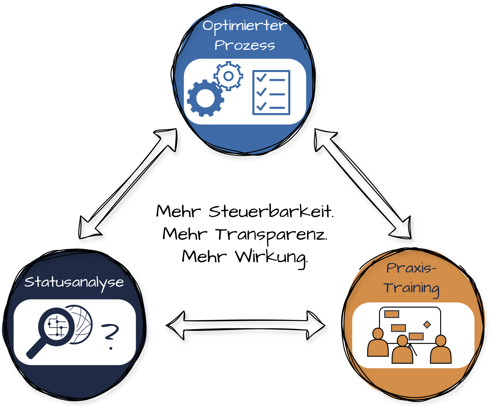 Nachhaltige Verbesserung entsteht durch und mit Menschen. Deshalb begleiten wir die Umsetzung mit: